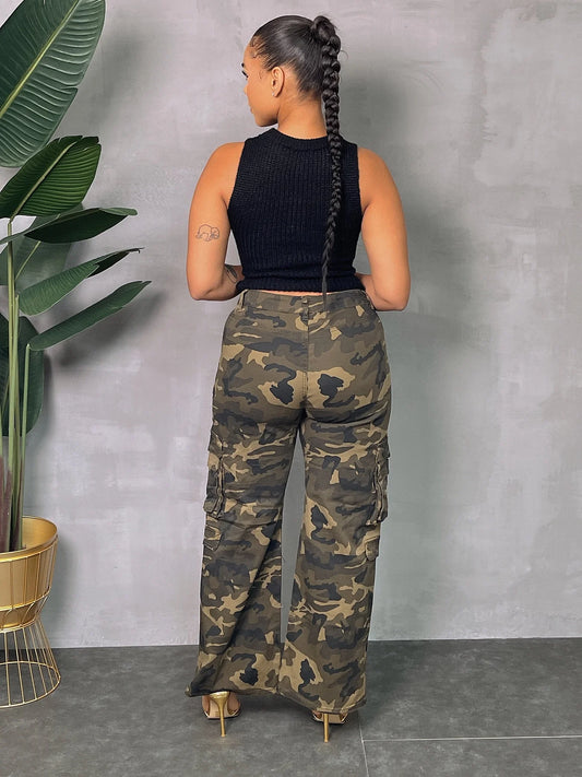 CAMO WIDE LEG CARGO PANTS